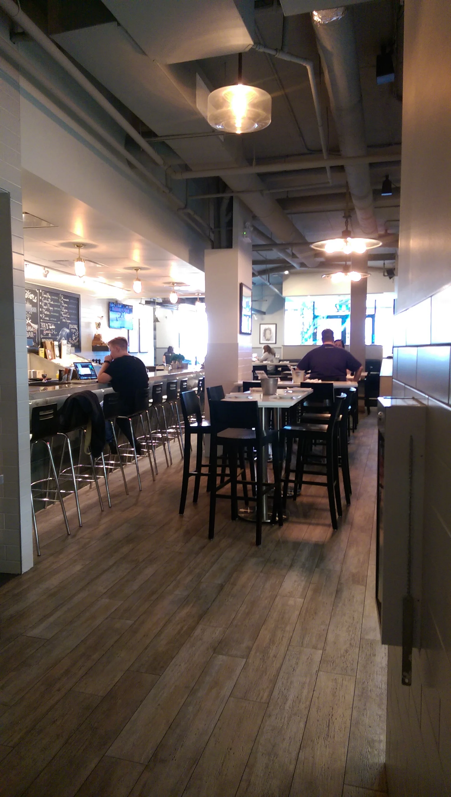 Boulevard was recommended to me by a local so I tried it out first. And on our first day in town before Brandon and I succumbed to jet lag we went for happy hour at Boulevard which coincidentally was located in our hotel. Happy hour seems to be pretty popular in Vancouver. It's not really a thing in Toronto but we were happy to get great drink and bite deals. The restaurant space is high end and stunning with lots of light and rich materials. Even the outside (below) was stunning. How could you not want to step inside? We got drinks and a couple dozen buck-a-shuck oysters that were prepared at a bustling bar right near our table. I'd suggest visiting in the evening for drinks and snacks, it has a great vibe.