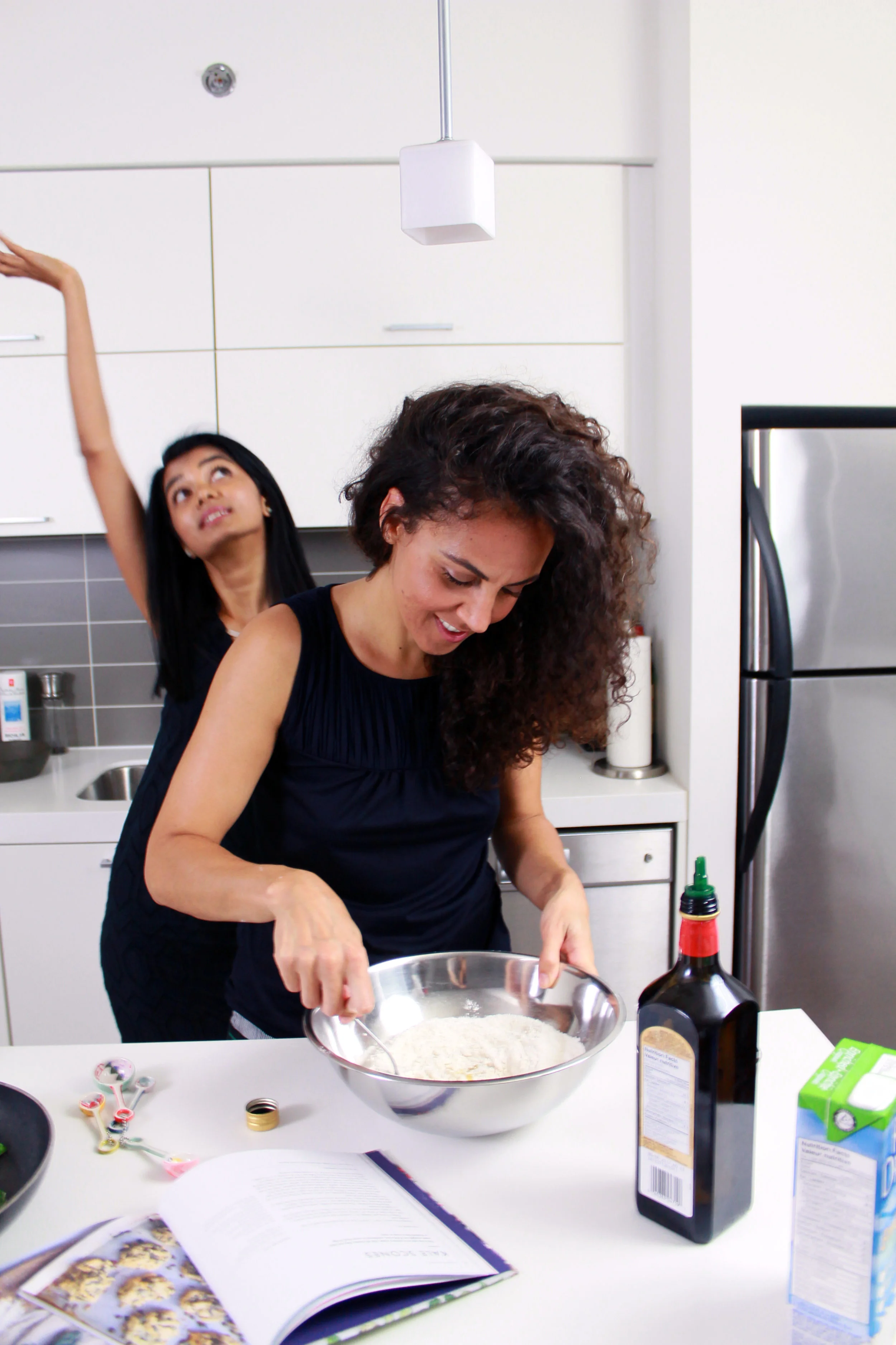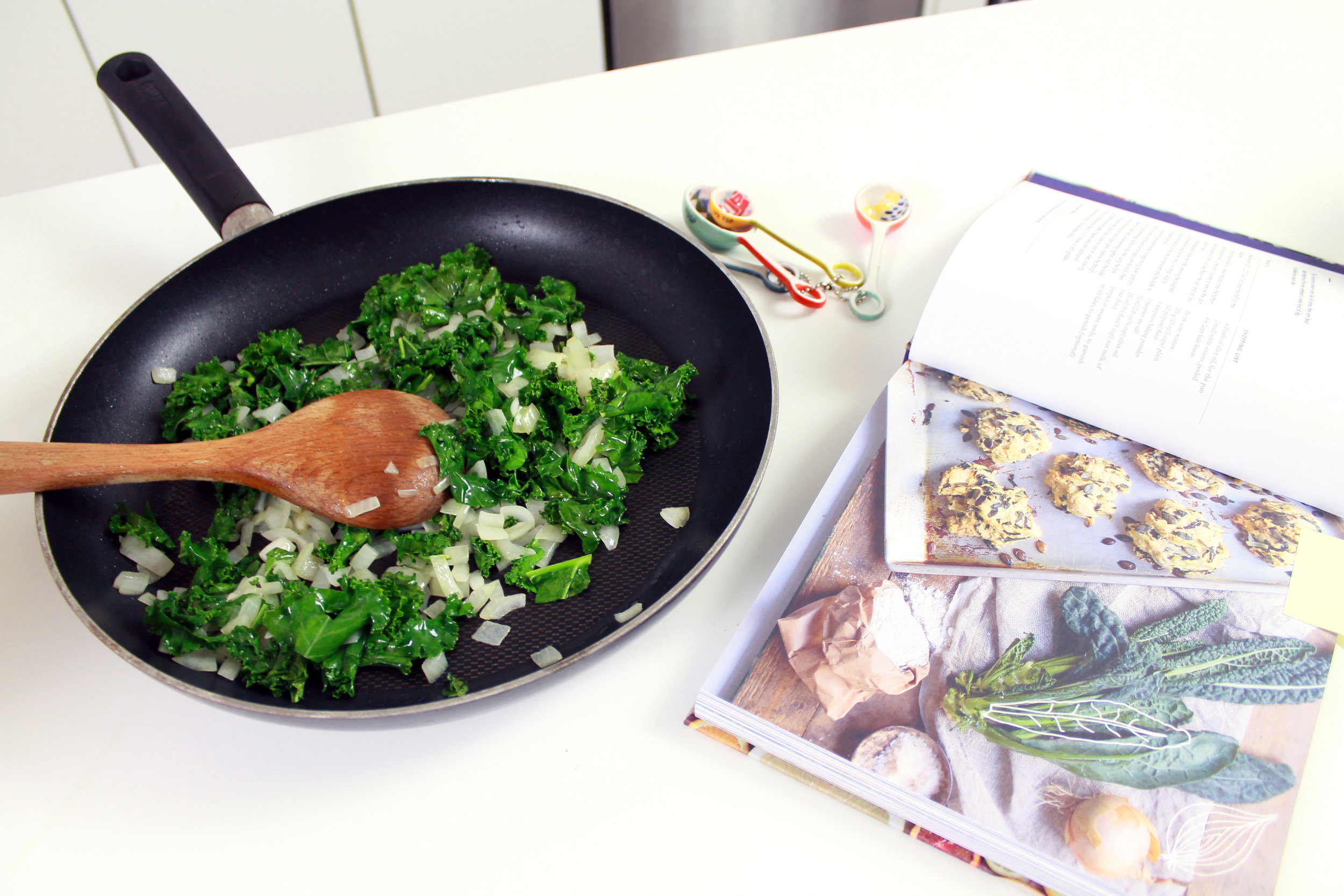 I selected two recipes from the book to have Joella (right) and our special guest Nicole (left) test out. We made a hearty mushroom stew and kale scones.