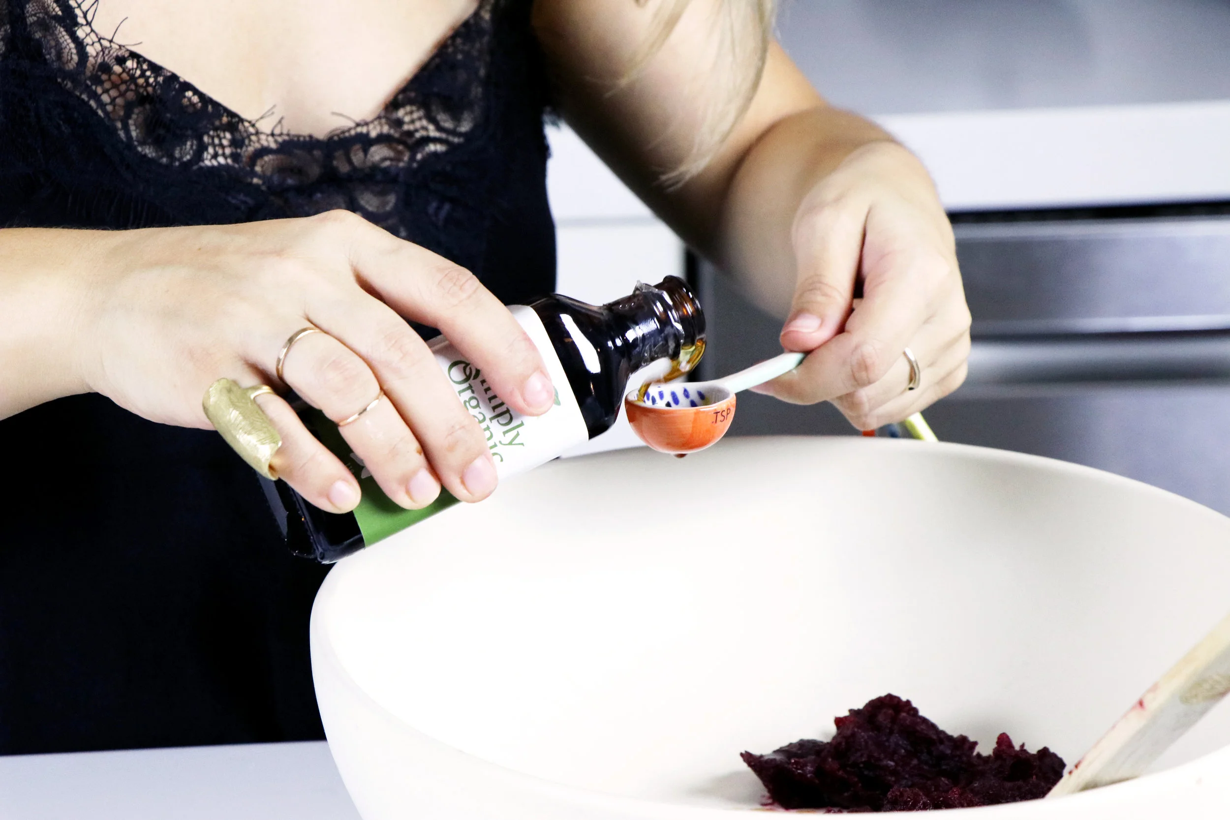 I'm a huge fan of baking with veggies. Whether it be carrot or zucchini added to a cake, or in this case roasted beetroot. First of all, that colour is amazing. And look at it when blended with the cocoa. We couldn't wait to dig in and the batter wasn't even ready yet.