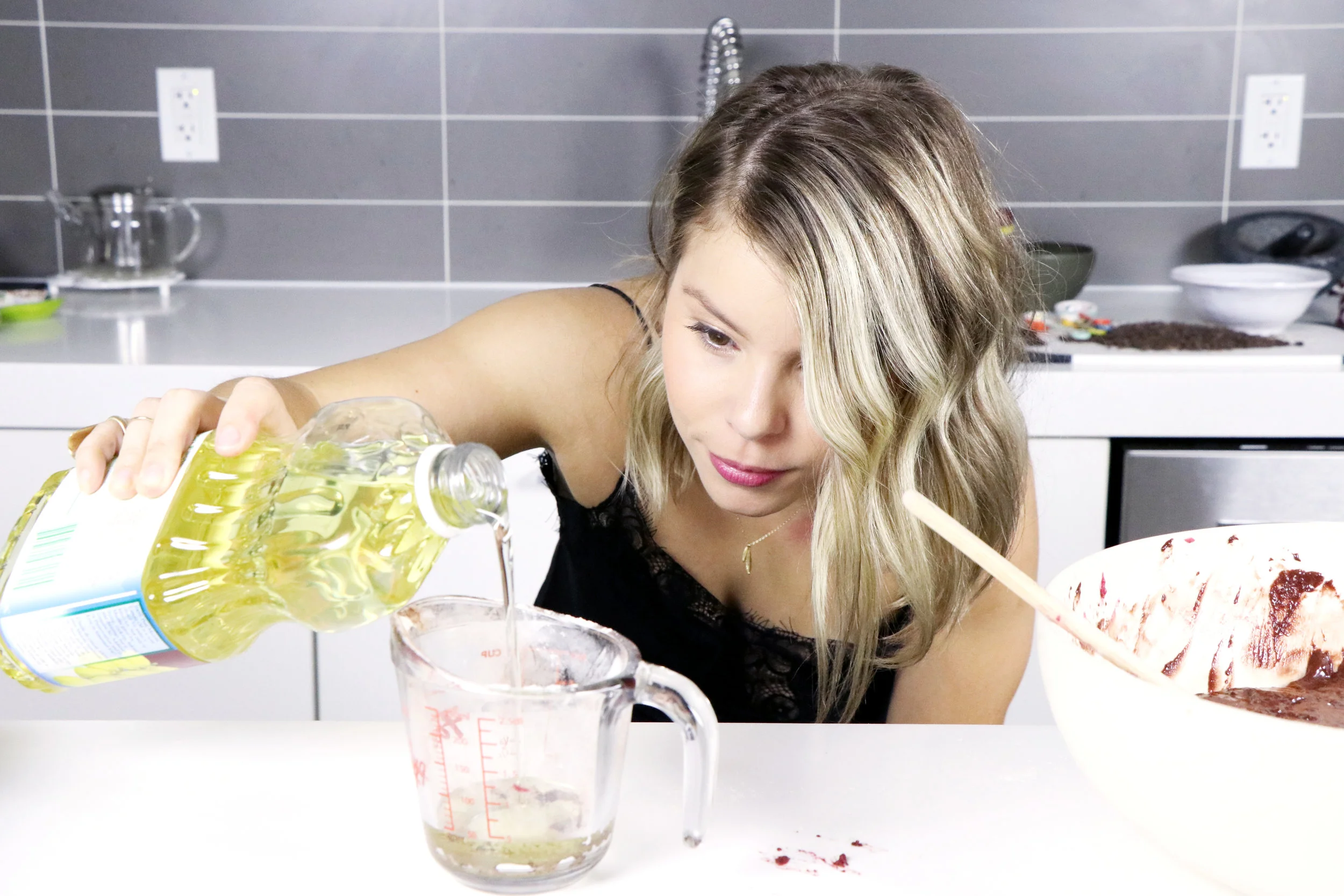 The formula and process of the recipe was different than any I had made before. We combined the beetroot, rice milk, eggs, and dry ingredients, and then added the oil afterwards plus a little extra rice milk, and the chopped chocolate. I'm not sure what the science is behind this but I'm used to adding the oil and eggs at the beginning. Nevertheless, the texture was excellent so this method worked.