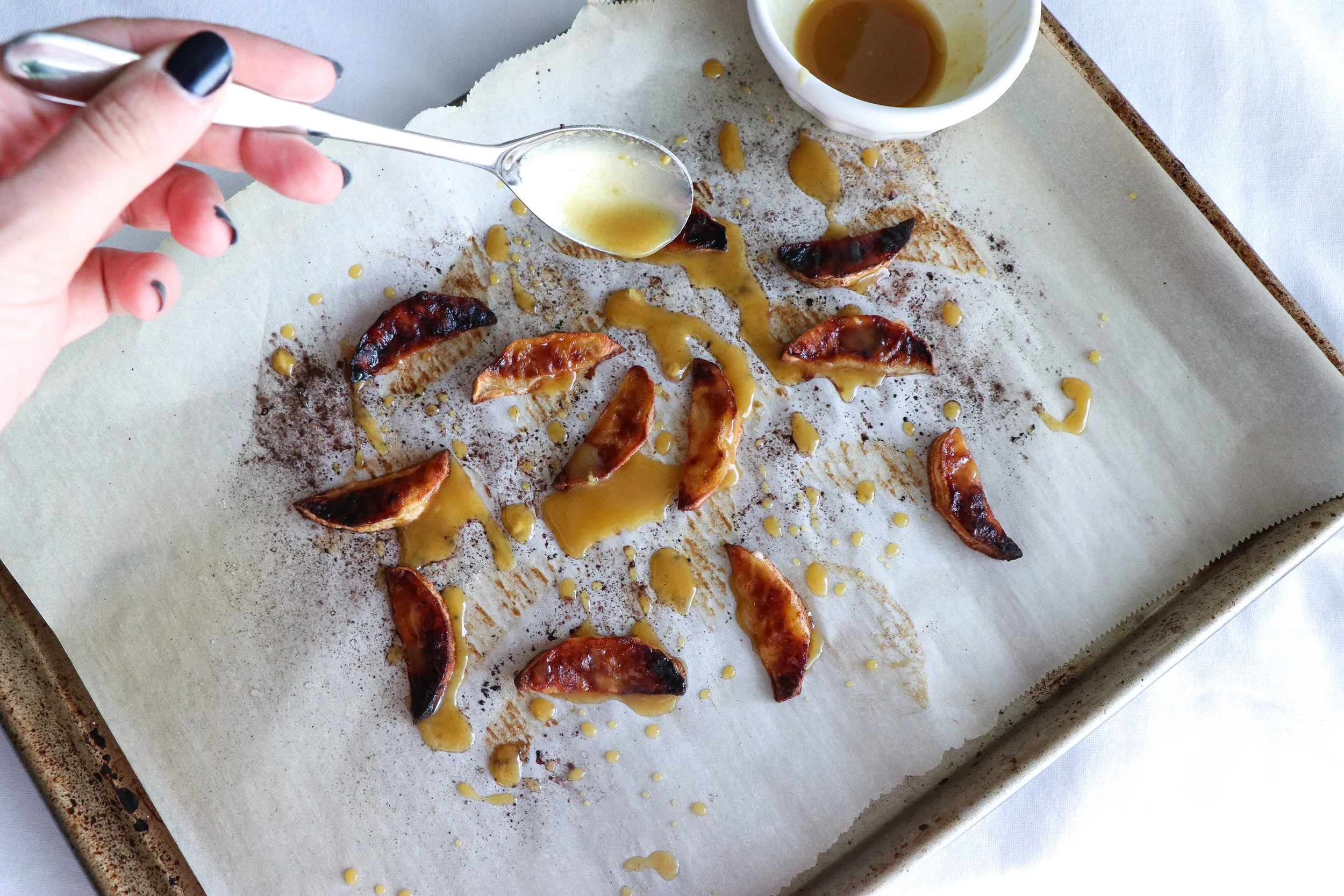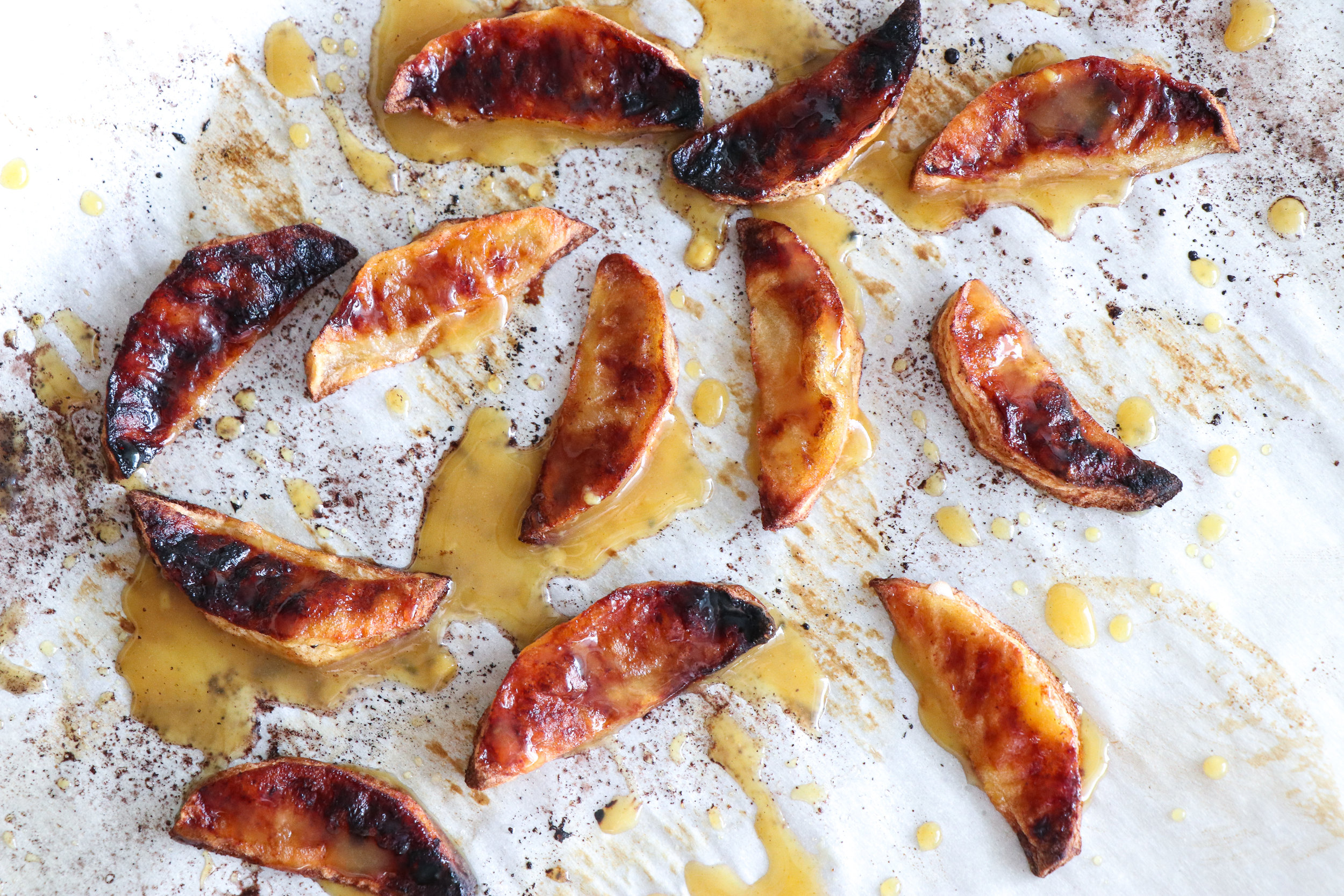 Better than regular fries and sweet potato fries! Apple fries are incredibly easy to make, taste fabulous, and are free from the top 8 allergens + gluten, and are suitable for vegans. Whip them up as a side dish for meat and poultry, or just as a simple snack. I like to make a batch when I’m craving the toasty apple flavor of a crumble or a pie, but don’t have time to make a topping or a crust.