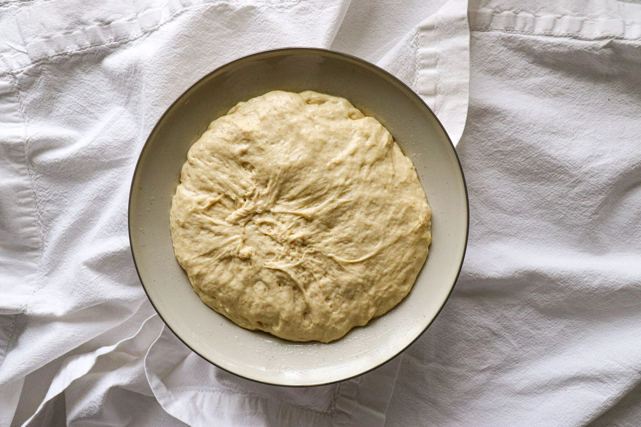 Transfer the dough to an oiled bowl that is large enough to contain at least twice the volume of dough. Cover with plastic wrap or a clean kitchen towel and let rise in a warm environment for roughly 1.5 - 2 hours, or until doubled in volume.