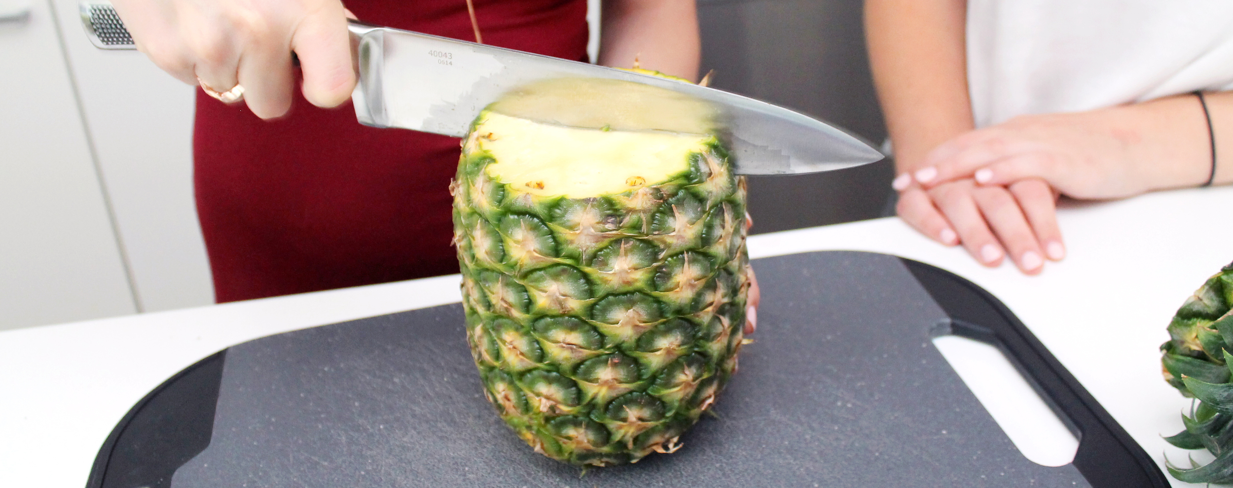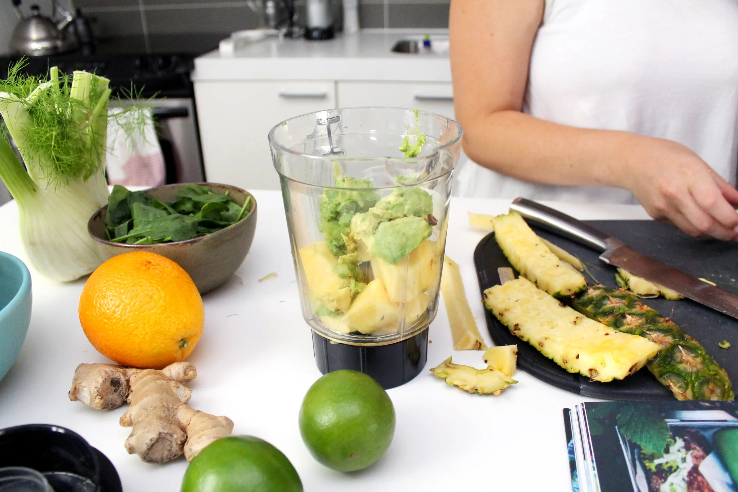 After the pineapple debacle (I could have been more helpful but.. we like to keep it real in the EAF kitchen) we got to blending up the Greens for All smoothie. Pineapple, avocado, lime, spinach, and coconut milk, were added the Magic Bullet and pulsed until smooth. I have a bullet blender because it's very light weight, but you can use whatever blender you prefer.